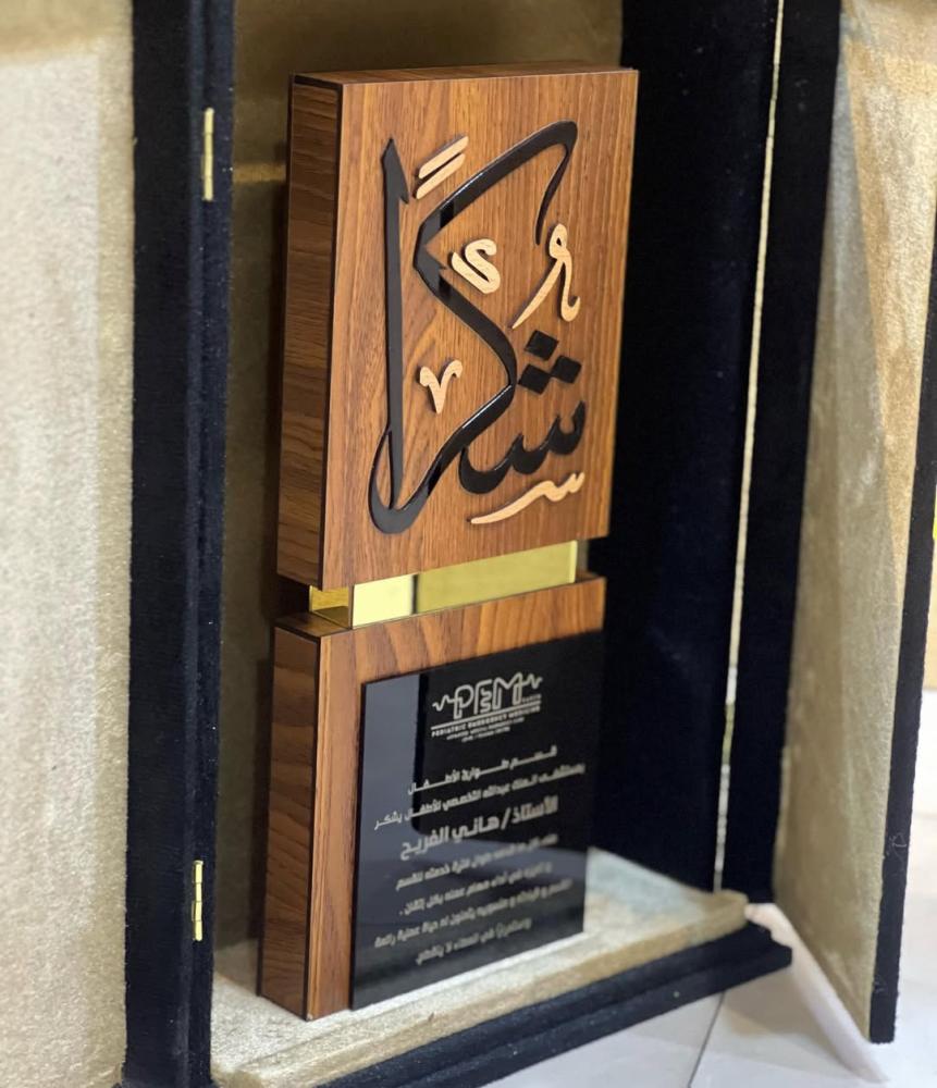 يتم تنفيذ كافة التفاصيل بدقة واحترافية، ليكون الدرع ذكرى خالدة تمثل التقدير العميق لجهود المكرّم.