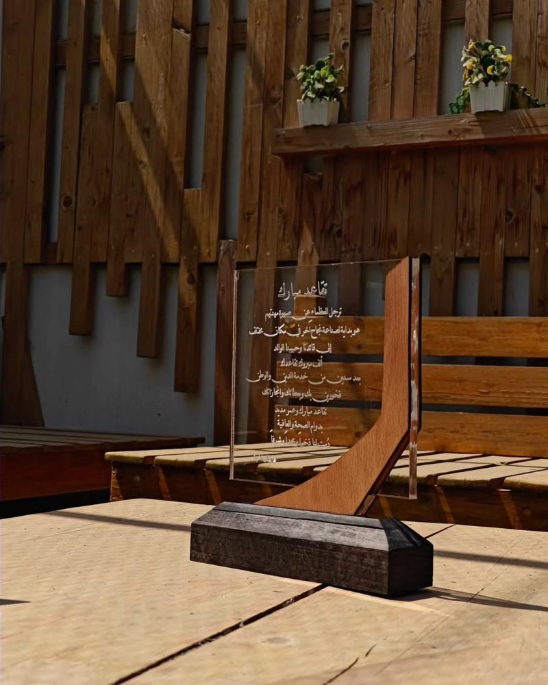 احتفل بإنجازاتك بأسلوب راقٍ مع دروع الترقية الفاخرة المصنوعة من أجود أنواع الخشب، بتصميم أنيق يجمع بين الفخامة والجودة.