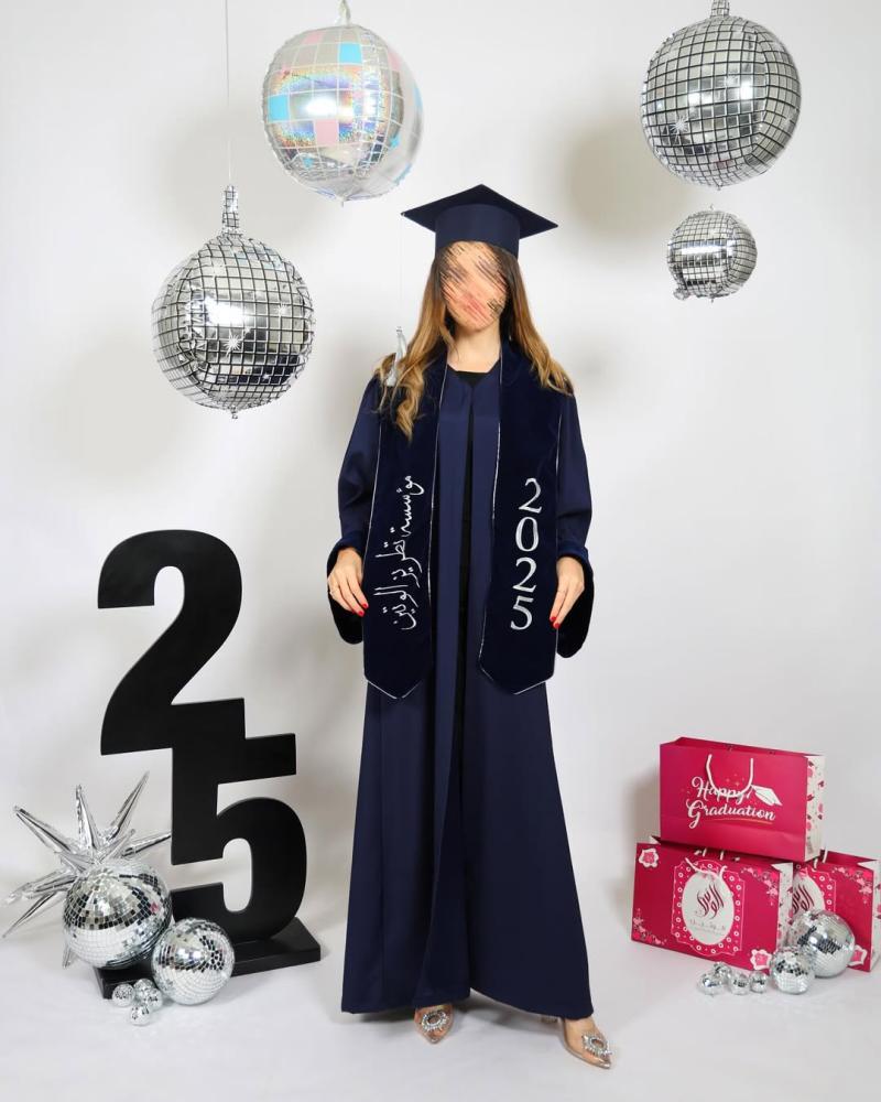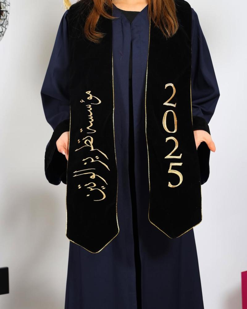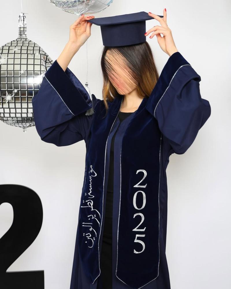 • وشاح تخرج لون كحلي مع تطريز حسب الطلب