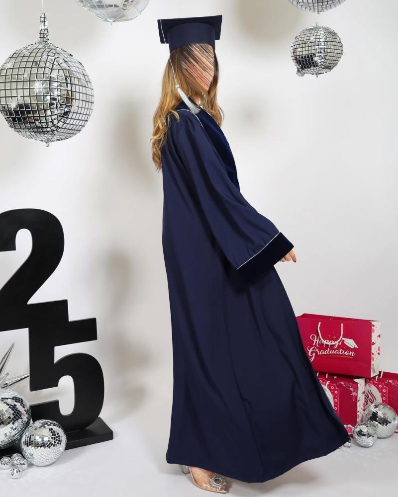 • عباية تخرج لون كحلي بقصة أنيقة وانسيابية